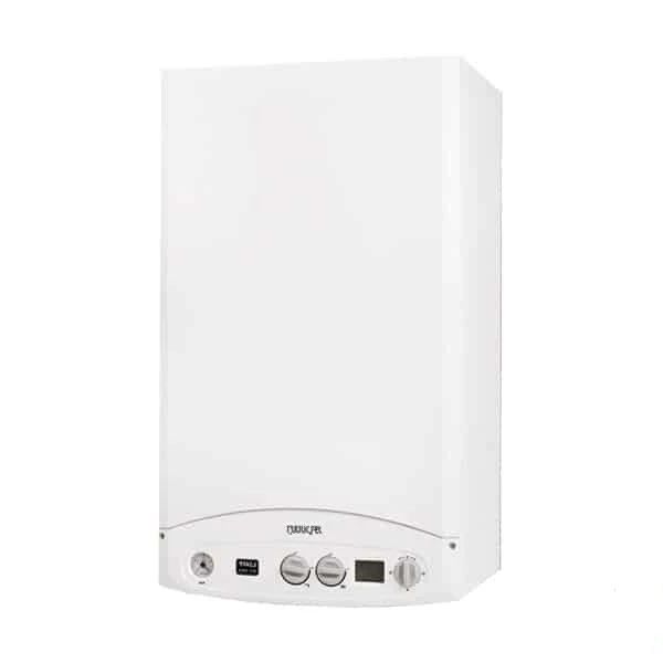 پکیج شوفاژ دیواری ایران رادیاتور مدل L42FF با قدرت 42 هزار کیلوکالری، مجهز به مشعل فندار، مبدل حرارتی اولیه و ثانویه از جنس مس و آلیاژ آلومینیوم، مناسب برای گرمایش منزل و تولید آب گرم مصرفی.